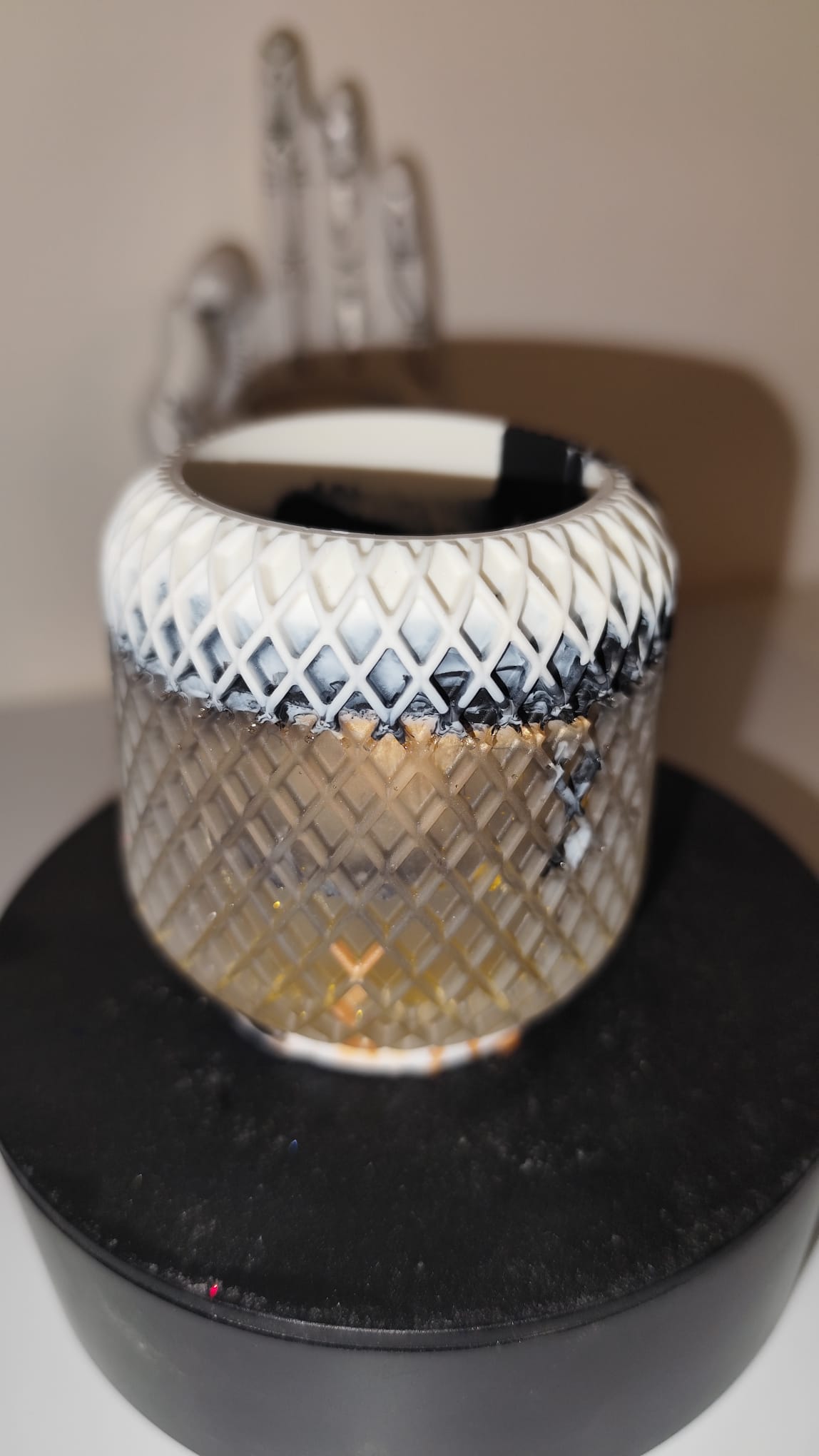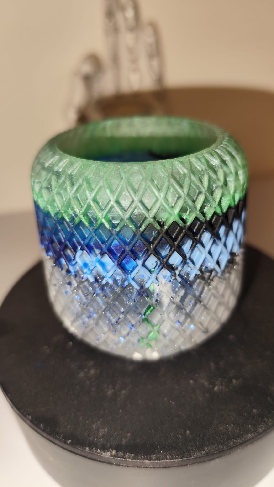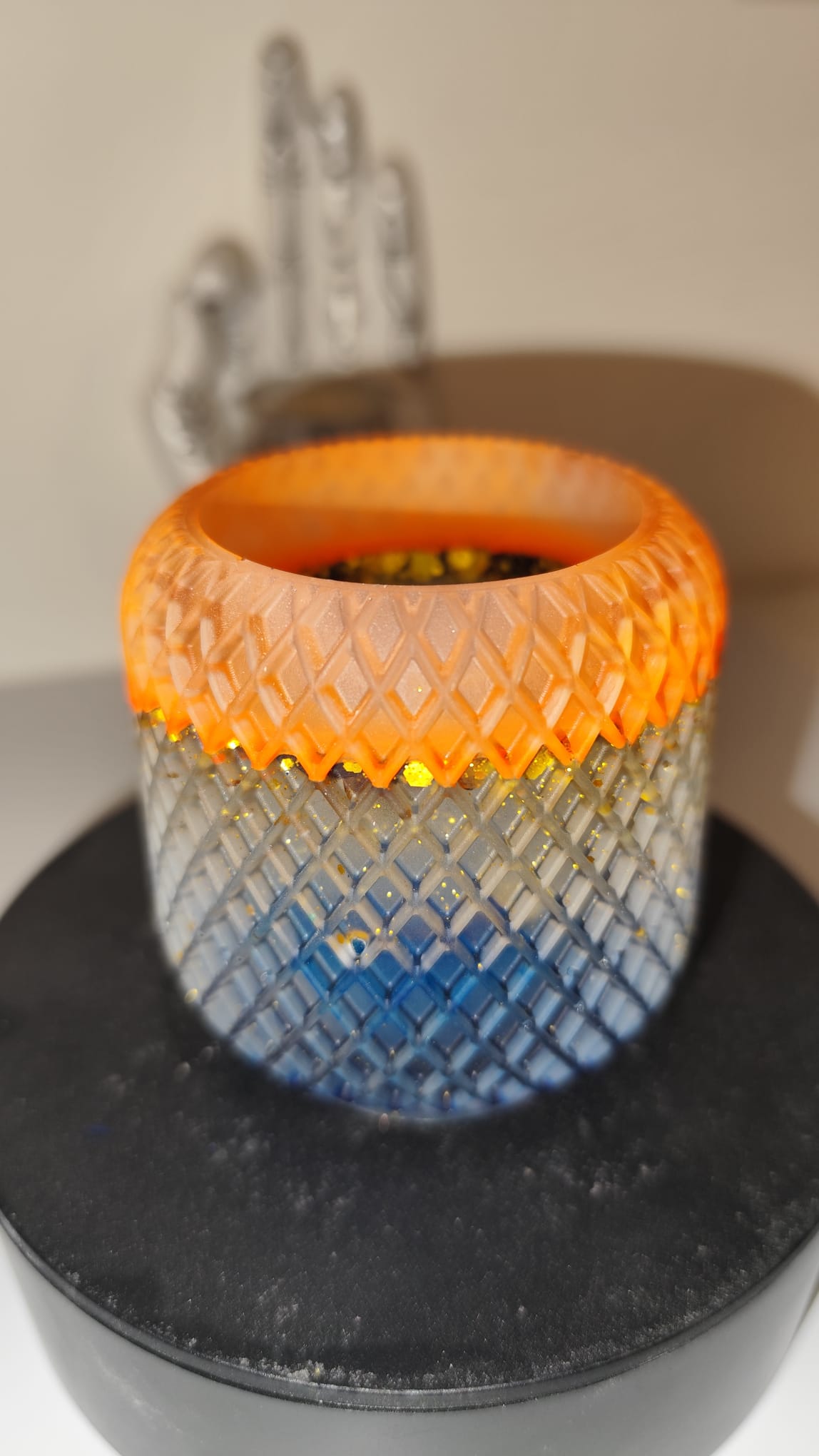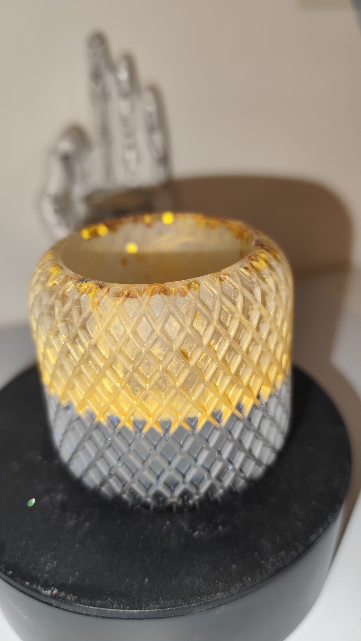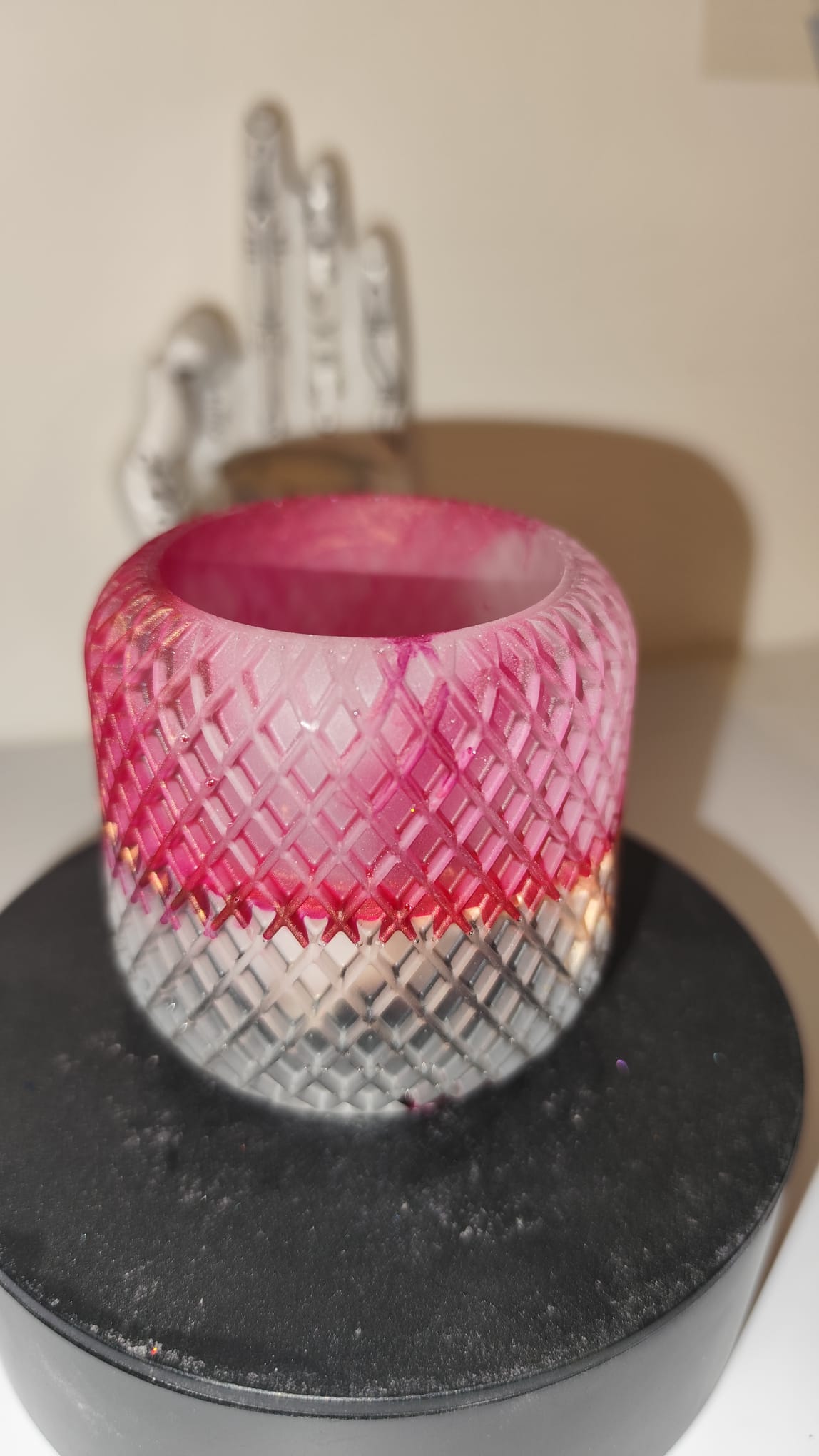 Epoxidharz ist ein sehr robustes Material, dennoch kann der Artikel brechen, wenn er auf harten Untergrund fällt. Außerdem sollten vom Gebrauch scharfkantige Gegenstände auf der Oberfläche getrennt werden, um mögliche Kratzer zu vermeiden.